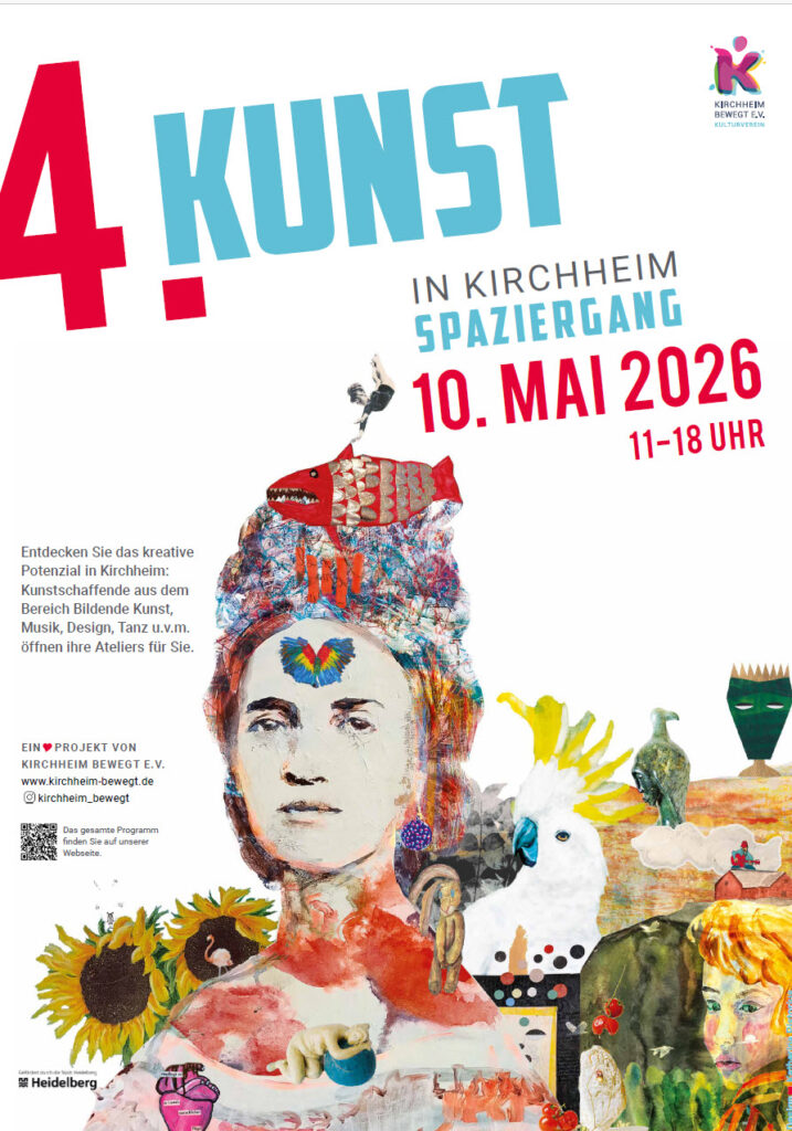 Mehr als 40 Kunstschaffende werden am Sonntag, dem 10. Mai 2026 in der Zeit von 11-18:00 Uhr ihre Werke in Kirchheim in ihren privaten Ateliers oder an zentralen Orten ausstellen.